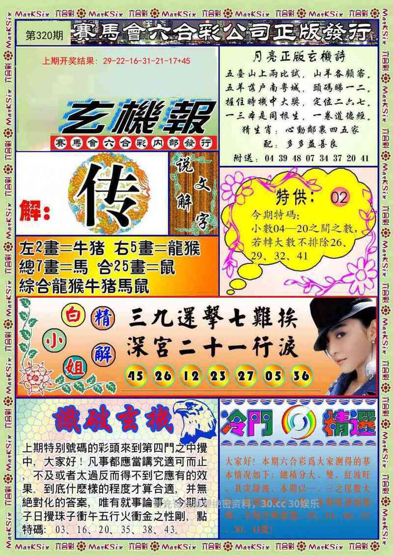 | 321期 | 蓝波绿波 | 开:羊23错 |
